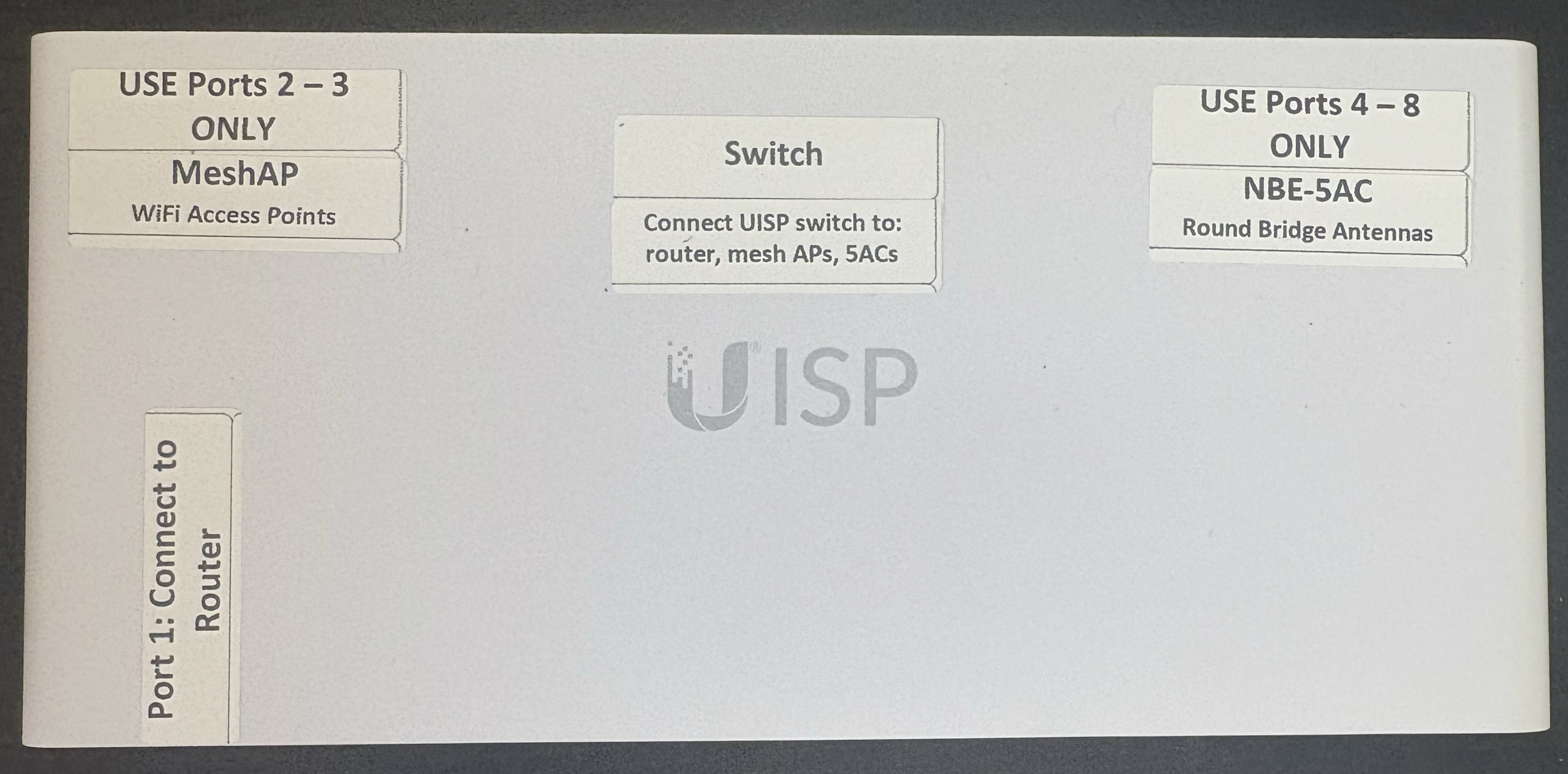 The UISP Switch connects to the following with CAUTION due to power settings on each port: