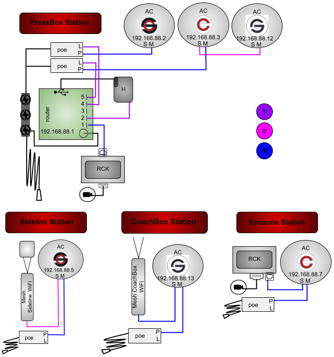 * The above configuration is used for games when the filmers and press box coaches are on the SAME side of the field.