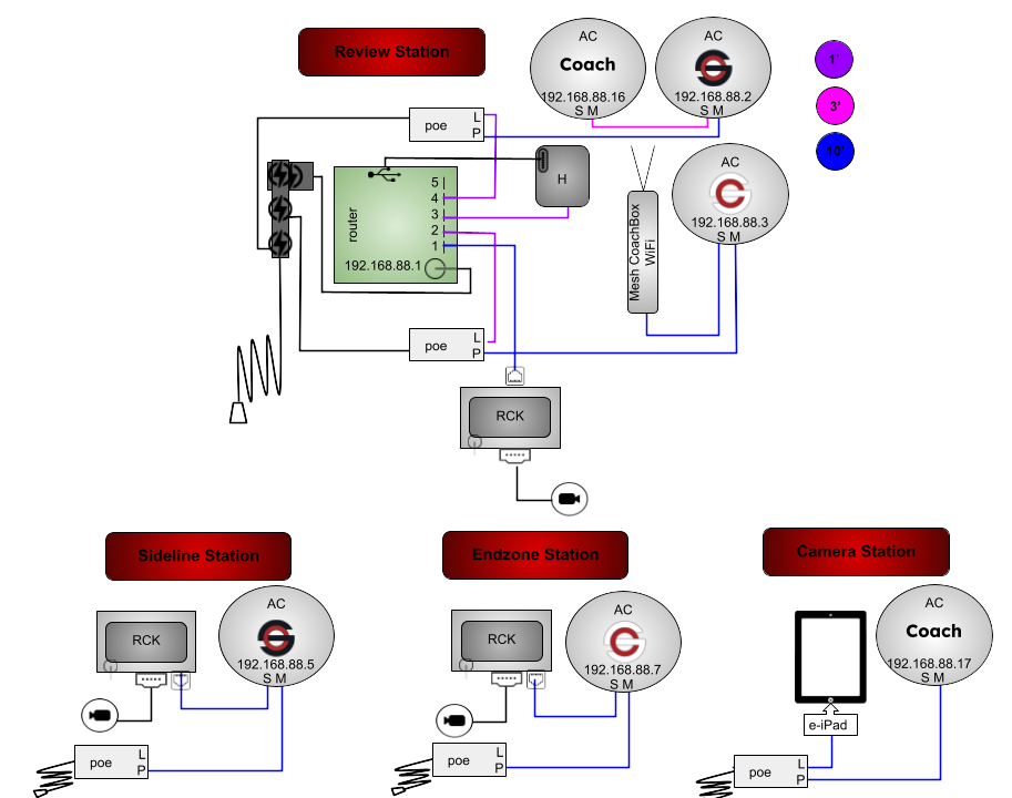 - Mesh CoachBox-WiFi antenna to connect to devices in the press box SC-CoachBox-XXXXX